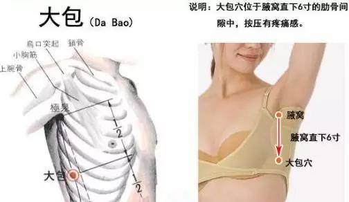 这个大包穴对身体的保养是非常重要的,因为它所处位置比较靠近胸部,所以我们在家里揉一揉就好了,不要小看这个动作,特别吃完饭以后,散散步,我们可以边散步边去揉揉这个大包穴,效果比吃药都实用!